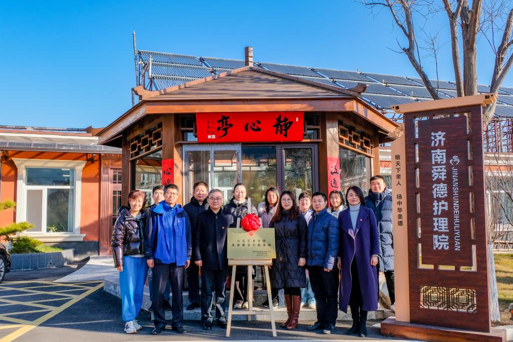 活动中,首先举行了“山东艺术学院党建服务实践基地”揭牌仪式,苏茂兴与济南舜德护理院负责人共同为基地揭牌。