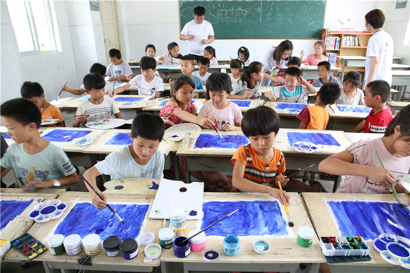 “每个梦想都值得灌溉,眼泪变成雨水就能落下来,每个孩子都应该被宠爱,他是我们的未来……”7月9日上午,一阵阵嘹亮动人的歌声从黄河滩区山东艺术学院第一书记帮包村瑞欣希望小学的教室里传出,这是山东艺术学院2018年“服务黄河滩区、助力精准扶贫”大学生暑期社会实践的艺术支教现场的场景。