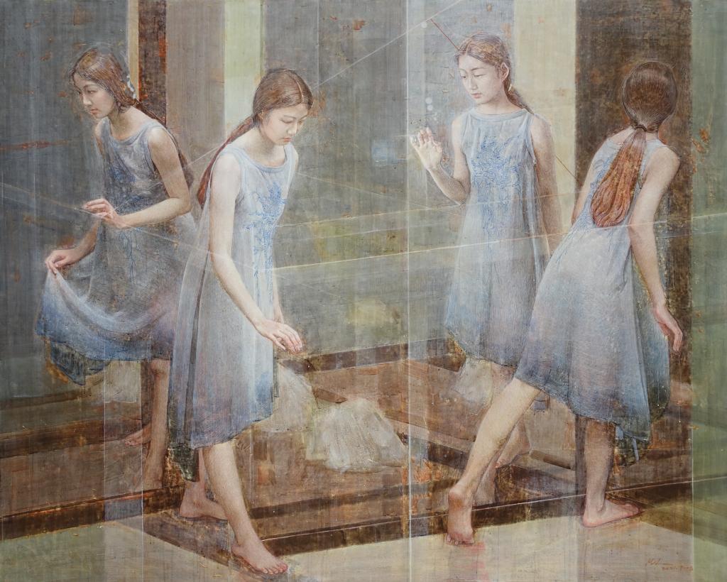 马蕾 《纳喀索斯—入山》 160×200cm 木板坦培拉 2021年