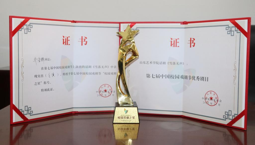 近日,第七届中国校园戏剧节在深圳落幕。我校原创话剧《雪落无声》入选戏剧节并荣获“第七届中国校园戏剧节优秀剧目奖”,戏剧学院2019级表演专业学生齐浩楠获得“第七届中国校园戏剧节校园戏剧之星”称号。