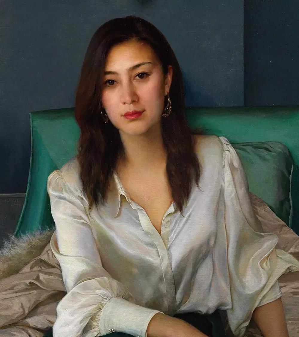 殷雄《着晚装的姑娘》布面油画 90cm×70cm 2021年
