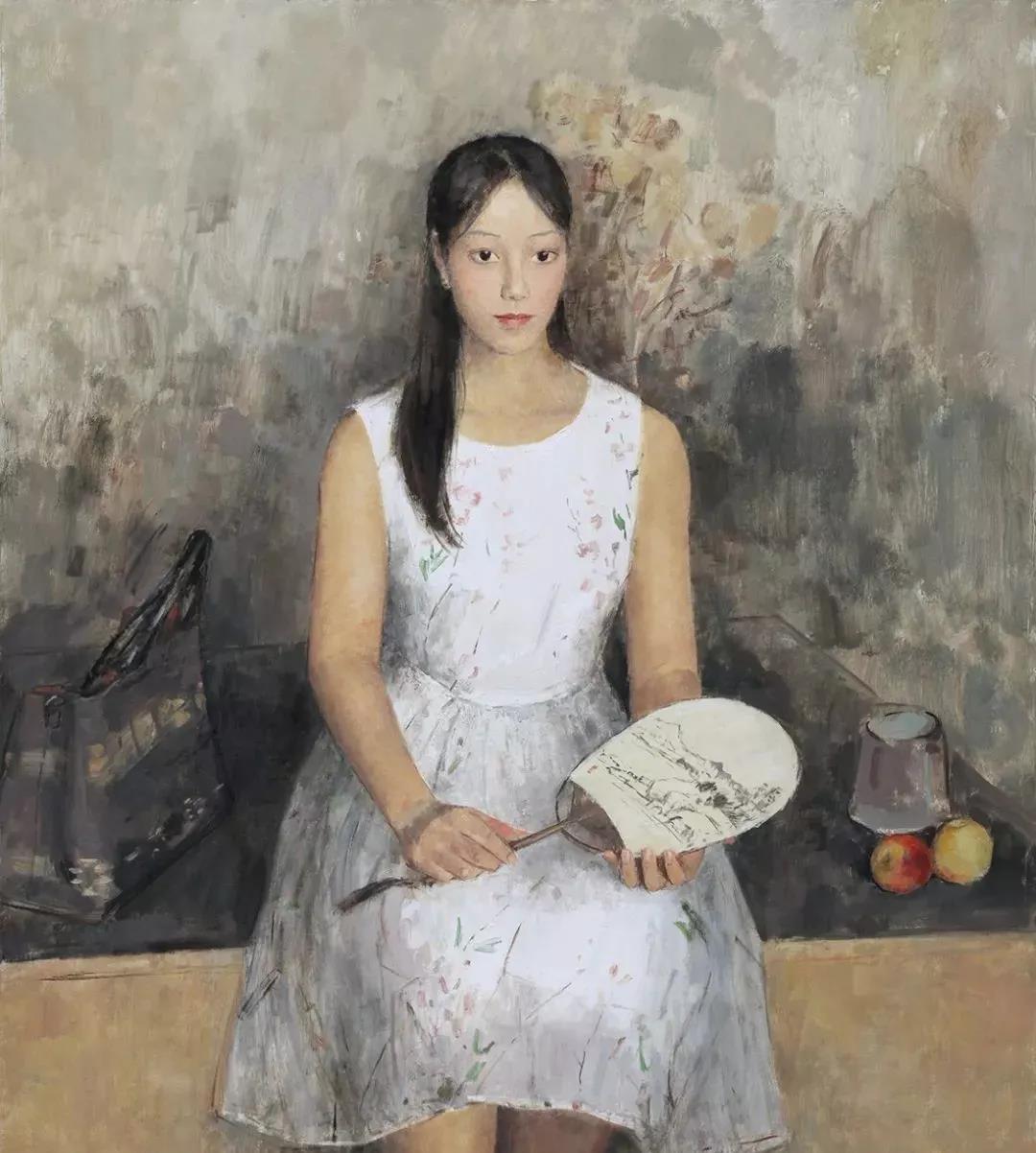 朱春林《持扇女子》布面油画 120cm×100cm 2021年