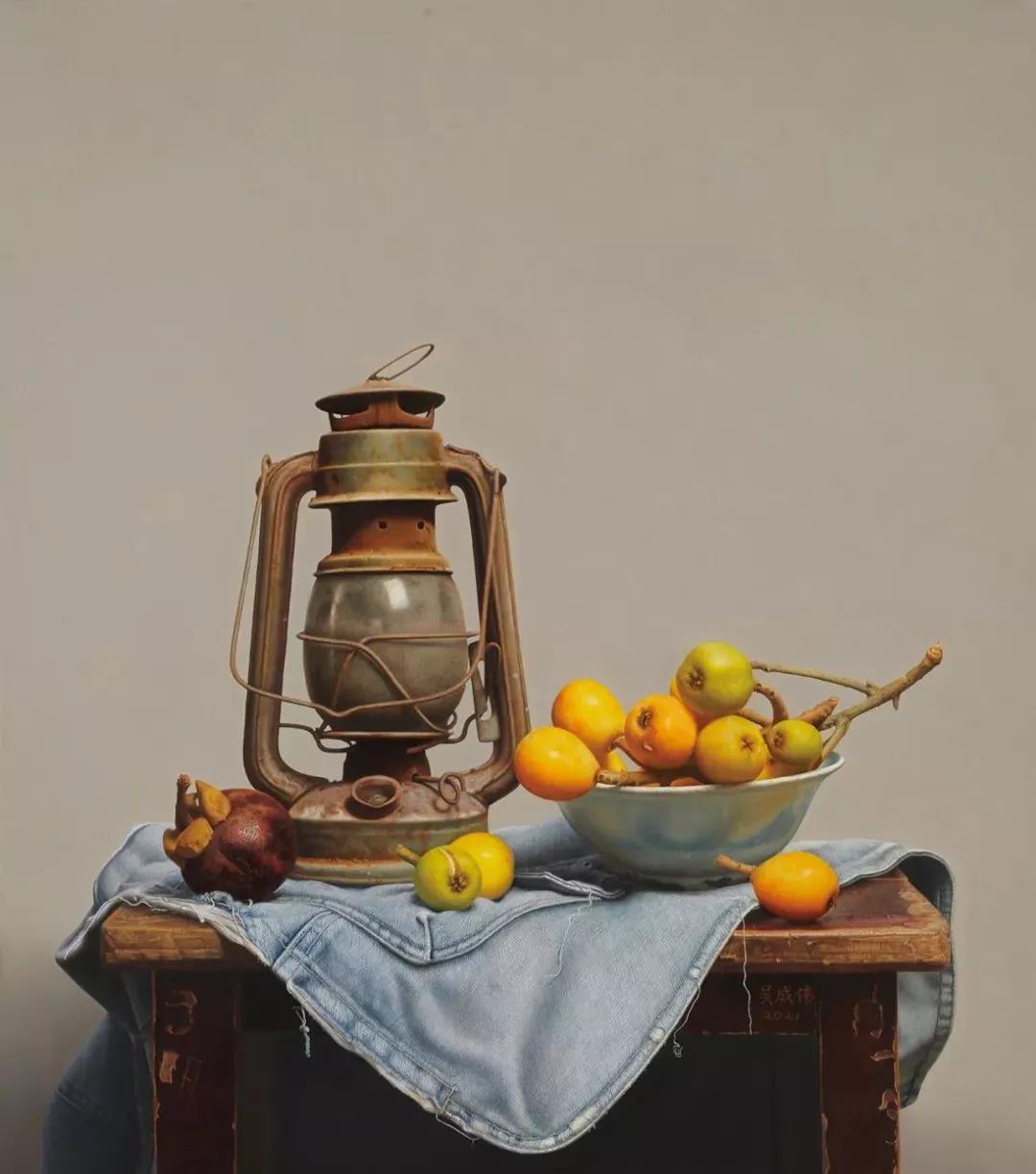 吴成伟《静物枇杷语》布面油画 60cm×50cm 2021年