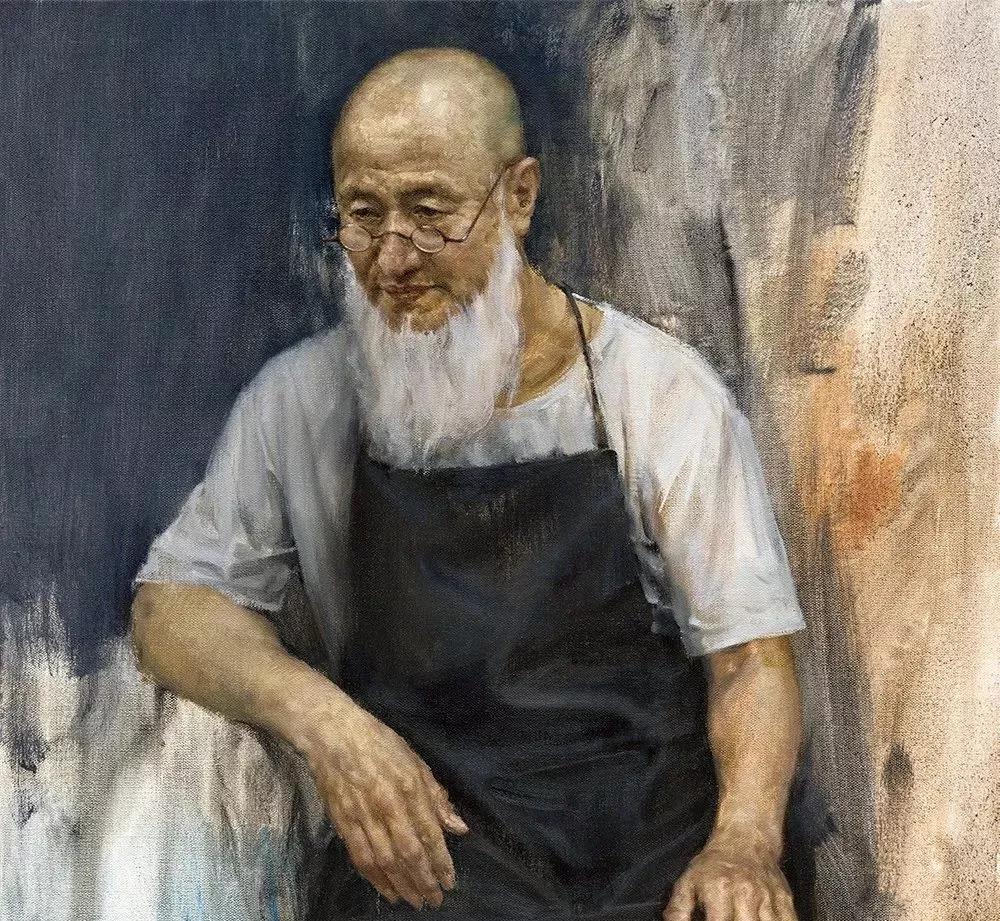 殷雄《老匠人》布面油画 80cm×80cm 2021年