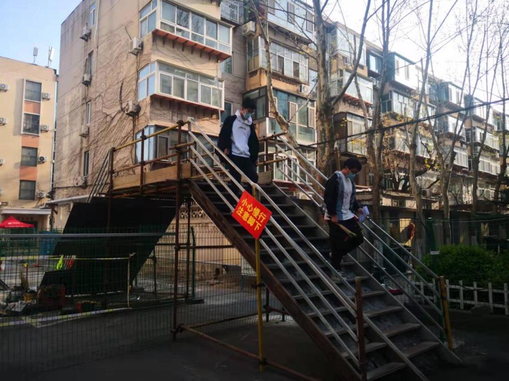 次日下午紧急启动临时过街天桥搭建工作,6名建筑工人争分夺秒,加班加点,连夜施工。晚上11点11分,临时过街天桥工程基本竣工,标志着山东艺术学院文东校区真正做到了教学区、生活区的分区隔离,在两天内实现了“蝶变”:南门管理更加严格、西门重新开启,绿色的隔离网将教学区和生活区有效分离,精心设计的过街天桥正在施工、临时过街天桥让学生通行有了“不走寻常路”的快乐,桥下通道让教职工体会到“一切如旧、岁月静好”的感觉……