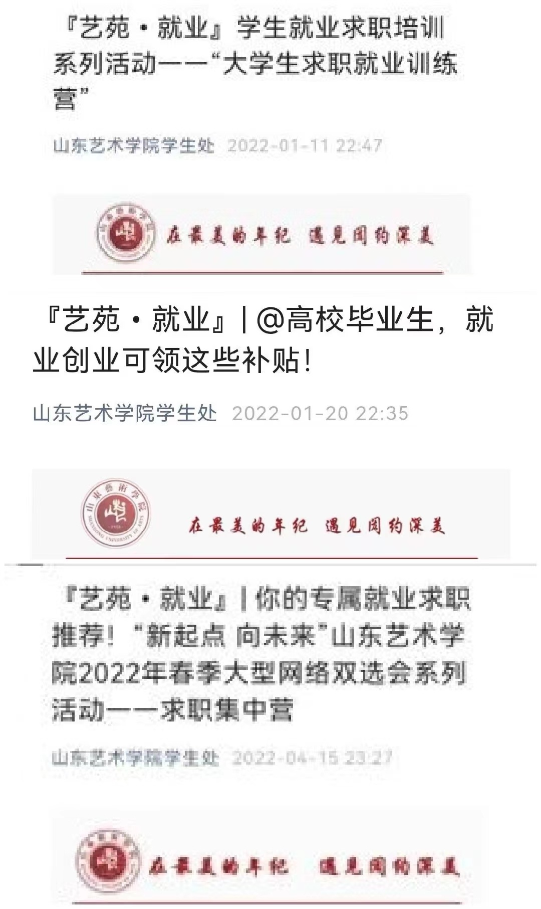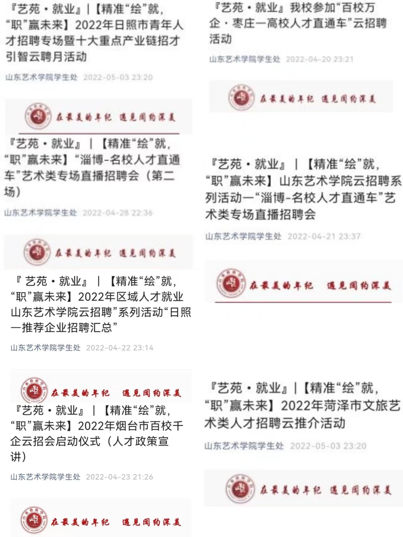 学校坚持一门心思“强措施”,促进就业指导更有“精度”。面对当前疫情防控形势的复杂性和毕业生就业形势的严峻性,各部门各单位积极亮实招、出硬招、谋新招,扎实做好做稳毕业生就业工作。用活用好各项就业政策。学校充分利用国家、省里的就业利好政策,积极动员宣传做好“三支一扶”“西部计划”、选调生等基层项目组织招录工作,积极采取有力措施,推动落实毕业生征兵入伍工作。合力打好“就业组合拳”。坚持线上与线下结合、校内与校外结合、走出去与请进来结合、实习与就业结合,把校内就业市场办好办精办实。通过举办“就选山东”山东艺术学院“新起点向未来”2022年春季大型网络双选会,实现就业咨询、业务办理一体化、网络化和面对面无距离的立体化就业市场。持续打造“互联网+就业”平台,构建以学生为中心的就业管理系统,实现就业资讯“一键到手”,推进就业手续“最多跑一次”改革,实现就业材料申请、派遣、改派等业务全程网上办理、限时办结。做深做细就业育人。学校将就业教育与毕业生思想政治教育有机融合,开展毕业生就业能力提升系列活动,把就业观、职业观、成才观引导贯穿在思政教育、专业学习和校园化活动中,引导毕业生正确认识就业形势,勇于担当社会责任,到祖国需要的地方建功立业。